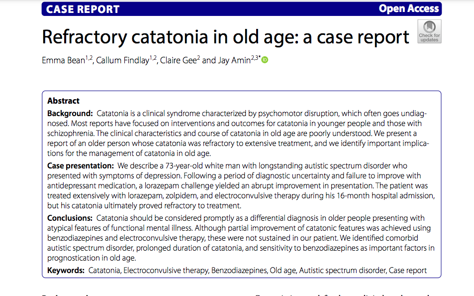 Keywords: Autistic spectrum disorder; Benzodiazepines; Case report; Catatonia; Electroconvulsive therapy; Old age.
